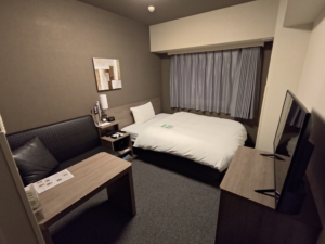 今回のお部屋はコンフォートシングルです。コンフォートルームは高層階確約なのと、マットレスに西川のAirが使用されており、少しの贅沢を味わえます✨ これはルートインに限った話ではないですが、最近のホテルはテレビも大型化し、YouTubeや他サブスクコンテンツを繋げることも出来るので、昔からあるテレビカードと合わせて、ビジホがどんどんお籠りステイに特化してきている印象を持ちます。 因みにルートインはWOWOWも視聴できちゃいます😎