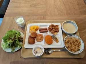 最後に朝食バイキングです。品数は前回と変わらないくらいでしたが、内容がかなり変化していました。特にお米ですが、白米と茶飯の2種類がありましたが、この茶飯がとても美味しかったです✨ 私、バイキングでお米のお代わりはほとんどしないのですが、今回に限ってはお代わりしてしまいました😎 全体的に私が好きな料理ばかりになっており大満足です!