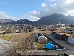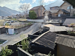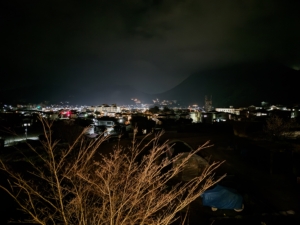 お部屋からの景色です。意外と街が明るく、素敵な夜景を楽しむことができました。今回は残念ながら雲がかかってしまいましたが、雄大な由布岳と街全体の大自然を目の前に楽しめます✨ 残念ポイントは部屋から右を見ると貸切露天風呂が見えそうなこと。もう少しプライバシーの配慮が必要かもしれませんね。
