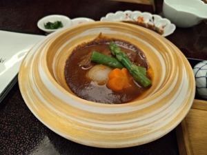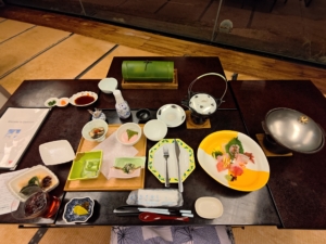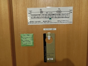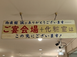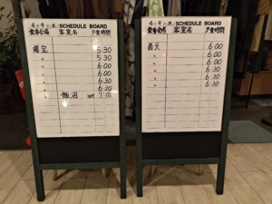 食事会場前に会場名・客室名・時間が分かる看板がありました。自分だけ一番遅い19時からで、スタッフの皆様方に申し訳なかったです😓
