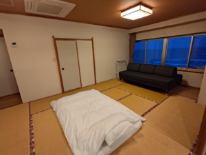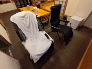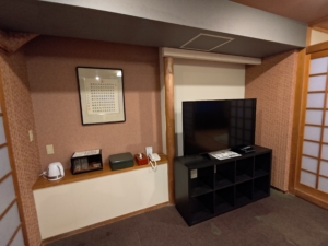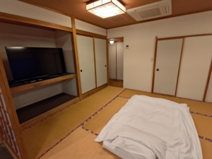 お部屋の写真も一気に載せます。部屋に入って広さに本当に驚きました😅 海が見えない山側の小さな部屋もありますが、基本的には海側のかなり広い部屋しか設定がないので、私のような1人旅は若干場違いな感じがありました😅 こちらの飯沼というお部屋、2009年リニューアルの客室のようですが、部屋の綺麗さから見て、恐らくその後もリニューアルされているような気がします。大きなテレビが2つ、和室にはソファベッド、洋室には海向きにイスとマッサージ機と、至れり尽くせりのお部屋でした😎 ただ、カーペットのシミの多さと、水回り付近は手が加えられていないのか、錆や補修の甘さが気になるところではありました。