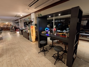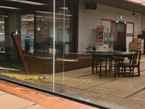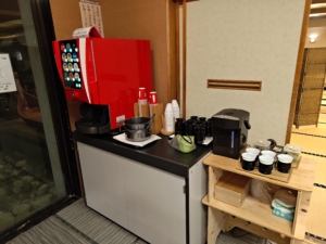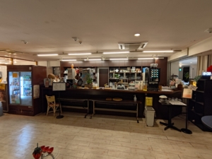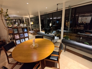 一気に写真を載せてしまいますが、フロント・ロビーから食事会場までの間に喫茶コーナーと売店と海が見えるガラス張りが続いていました。特に大きなガラスの前においてあるソファ等からは雄大な海を眺めることができ、最高のロケーションでした✨ 部屋ではなく、正直ここだけで1日潰せちゃうのではと思うくらい素晴らしい家具等の配置ですね!