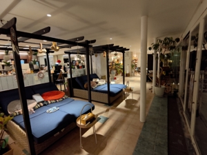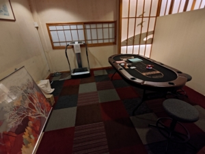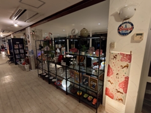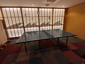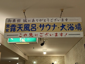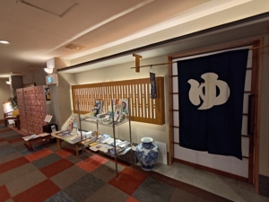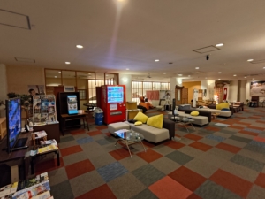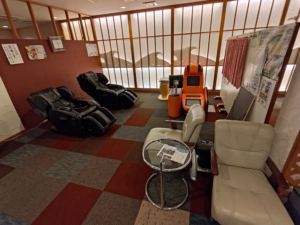 ロビー等に大量に座れる場所があるにも関わらず、ロビー横の大浴場の入口前にも大量のソファがありました✨ こちらには自販機やガチャガチャ、沢山の観光パンフレットが置いてありまして、他にもマッサージ機とポーカー台と卓球台がありました。本当にどこでもゆっくりできます😁 天井から吊り下げられている看板が味があり良いですね😎